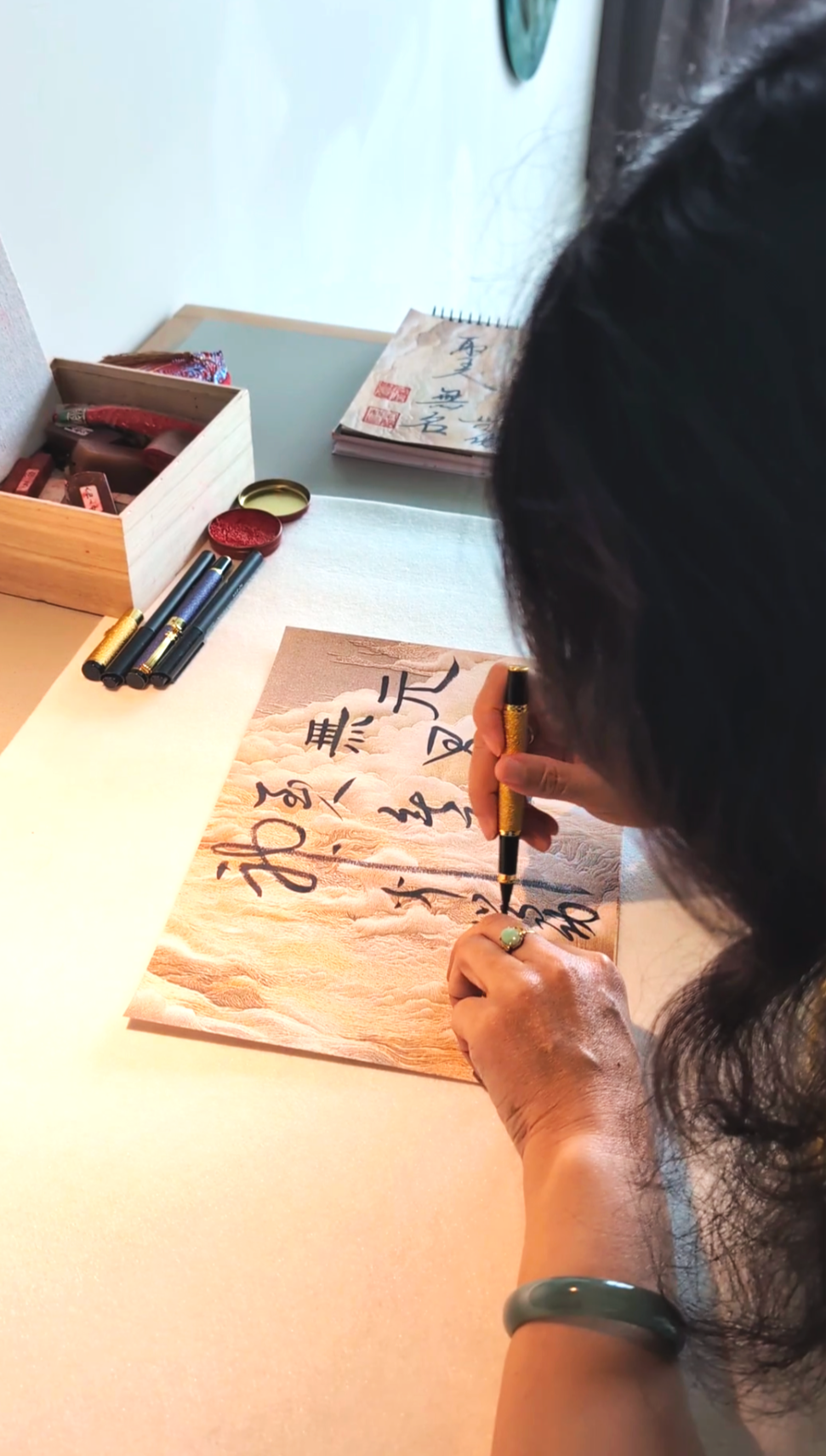 三个“人”字,我赋予它们完全不同的性格——从厚重到轻盈,从入世到出尘。它们在笔端变换姿态,时而厚重如地热,时而轻盈如莲花云。书体的揉捏与呼吸,让文字不再是符号,而成为游走于天地的生命痕迹。